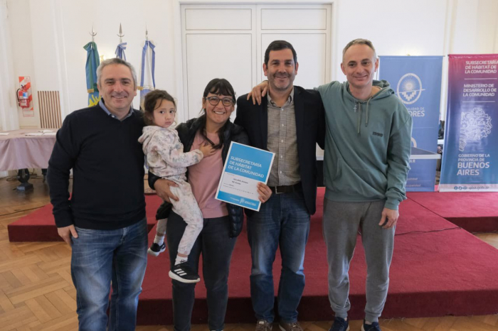 Por otra parte, con la presencia de los directores provinciales de Intervenciones Complementarias, Érica Osterriet, y de Producción de Hábitat, Andrés Quinta, se hizo entrega de 59 boletos de compra venta en el marco del programa Plan Familia Propietaria que impulsa la Subsecretaría de Hábitat bonaerense. Esta herramienta posibilita el acceso al lote propio mediante la adquisición directa por parte de la Provincia o la afectación de inmuebles, y una vez finalizado ese proceso, por intermedio de la Escribanía General de Gobierno se realiza la escrituración gratuita.