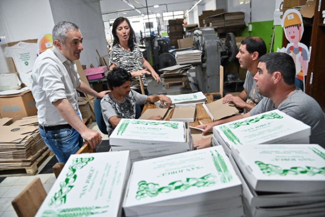 Las autoridades también recorrieron el proceso productivo que se lleva adelante en el espacio, troquelado, descartonado, impresión serigráfica, pegado y armado de cajas y conversaron con el equipo técnico y directivo para abordar el funcionamiento del dispositivo y sus desafíos.