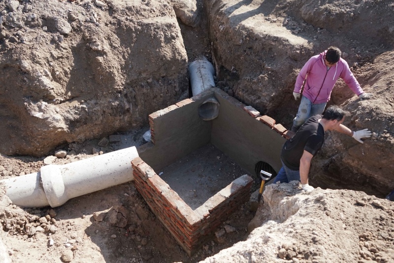 Como complemento a la ejecución de las obras de cordón cuneta desarrolladas desde la Secretaría de Planeamiento, Obras y Servicios Públicos, se está llevando a cabo la extensión de la red de desagües pluviales con la construcción de nuevos sumideros en la esquina de la Avenida 43 y Calle 80.