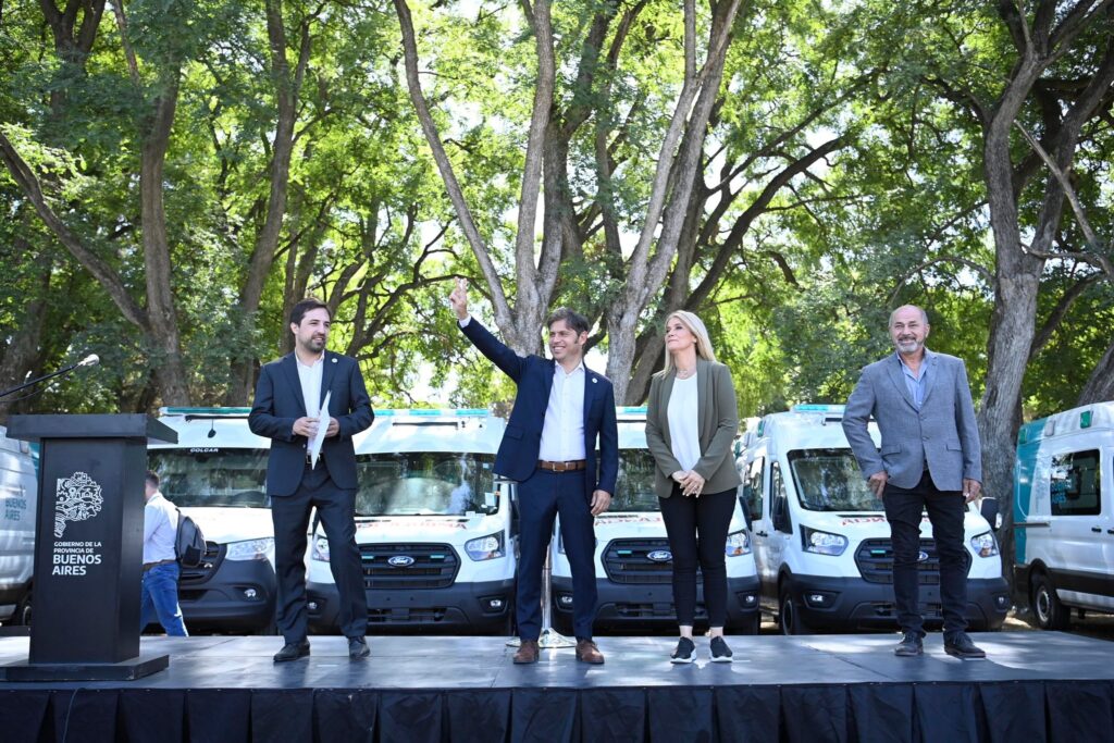 El gobernador de la provincia de Buenos Aires, Axel Kicillof, encabezó la presentación de 199 nuevas ambulancias de alta complejidad que serán destinadas a fortalecer los sistemas sanitarios bonaerenses. Fue en el Hospital El Dique del partido de Ensenada, junto a la vicegobernadora Verónica Magario; el ministro de Salud, Nicolás Kreplak; y el intendente local, Mario Secco.