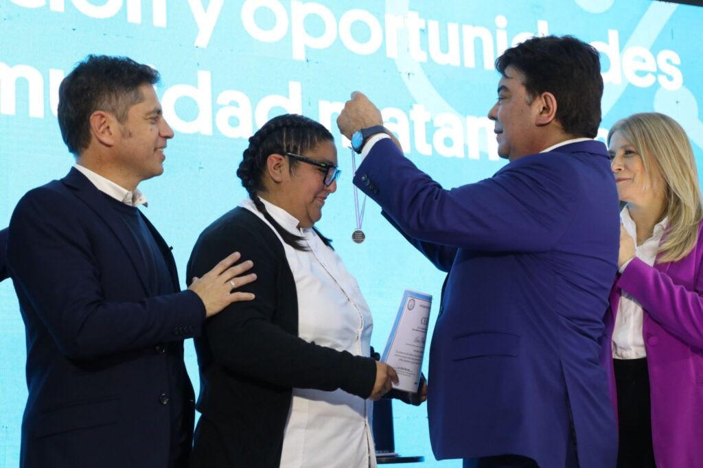 Al celebrarse el acto de entrega de diplomas a más de 250 graduadas y graduados el intendente de La Matanza y presidente de la Federación Argentina de Municipios (FAM), Fernando Espinoza, participó junto al gobernador de la provincia de Buenos Aires, Axel Kicillof; la vicegobernadora, Verónica Magario; y la secretaria de Políticas Educativas local, Silvina Gvirtz.