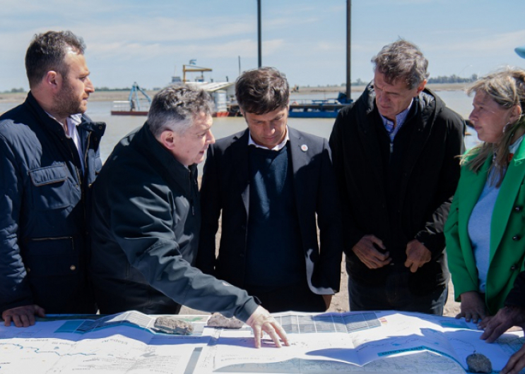 El gobernador de la provincia de Buenos Aires, Axel Kicillof, recorrió los avances de las obras de adecuación del cauce del Río Salado y mantuvo una reunión con productores rurales de la región en 25 de Mayo.