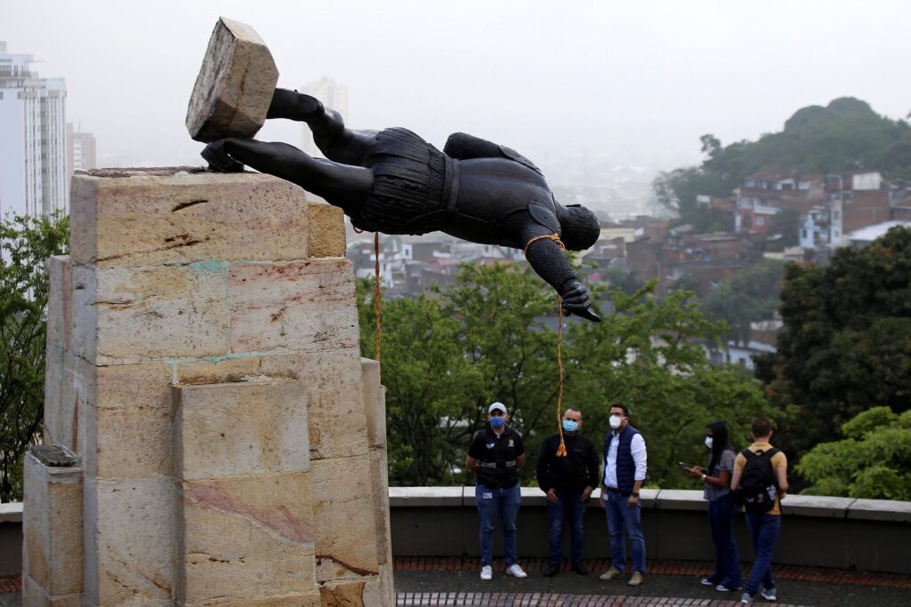 La imagen del monumento a Sebastián de Belalcázar, derribado por un grupo de indígenas Misak, fue una de las más simbólicas durante las protestas colombianas de 2021. La caída de la emblemática estatua del conquistador español en la ciudad de Cali esparció un efecto que se sintió en Bogotá y marcó el paisaje urbano de estas ciudades. Cayó el Gonzalo Jiménez de Quesada del centro de la capital; la plazoleta de Los Héroes quedó sin el Simón Bolívar montado en su caballo; la avenida El Dorado sin el Cristóbal Colón de principios del siglo pasado, y sin la Isabel la Católica a su lado.
