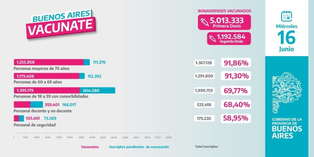 Así lo informaron a DIB fuentes del Ministerio de Salud de la provincia de Buenos Aires, luego de que ayer se anunciara que la campaña de vacunación ya alcanzó las 5 millones de personas vacunadas.