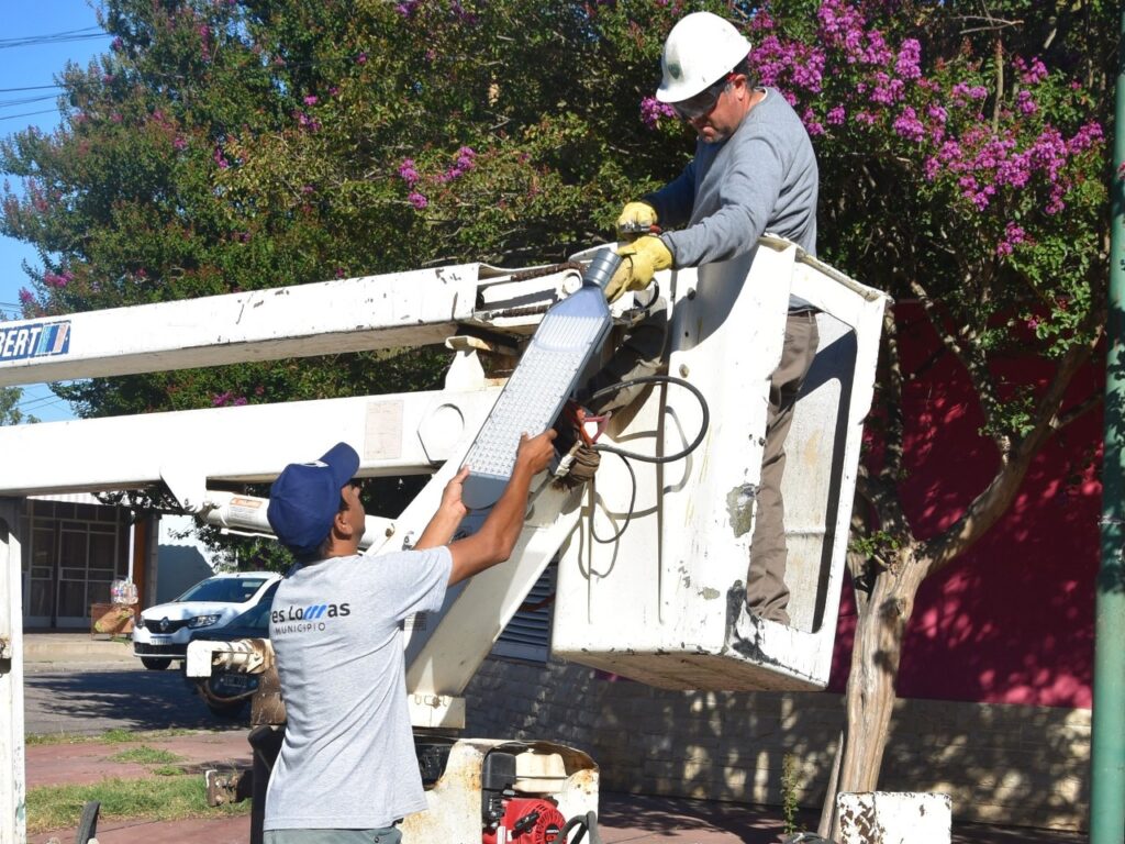 La Municipalidad de Tres Lomas, continúa colocando nueva luminaria LED en diferentes puntos de la ciudad, con el objetivo de dotar al alumbrado público con una iluminación más moderna sostenible y eficiente.
