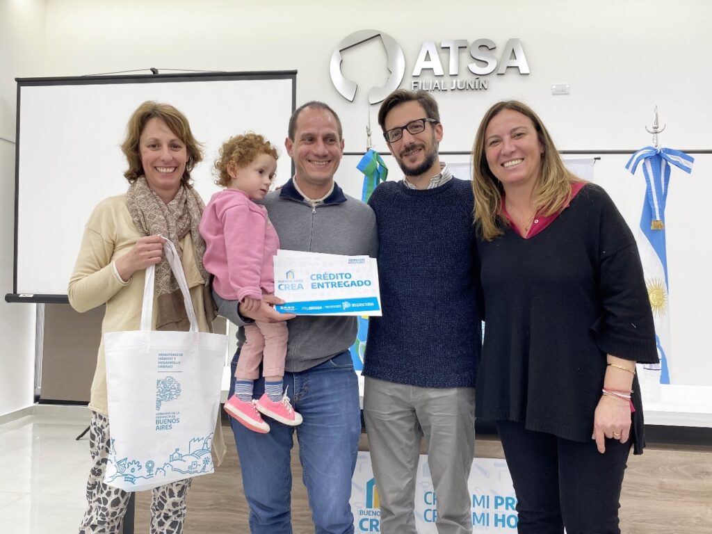 El ministro de Hábitat y Desarrollo Urbano de la Provincia de Buenos Aires, Agustín Simone, encabezó la entrega de 19 créditos Buenos Aires CREA en la sede del sindicato ATSA en Junín.