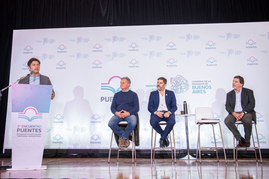 El gobernador de la provincia de Buenos Aires, Axel Kicillof, y el ministro de Gobierno, Carlos Bianco, firmaron acuerdos con intendentes y autoridades universitarias para seguir fortaleciendo el Programa Puentes, la iniciativa con la que el Estado bonaerense trabaja para garantizar el derecho a la educación superior en todo el territorio provincial.