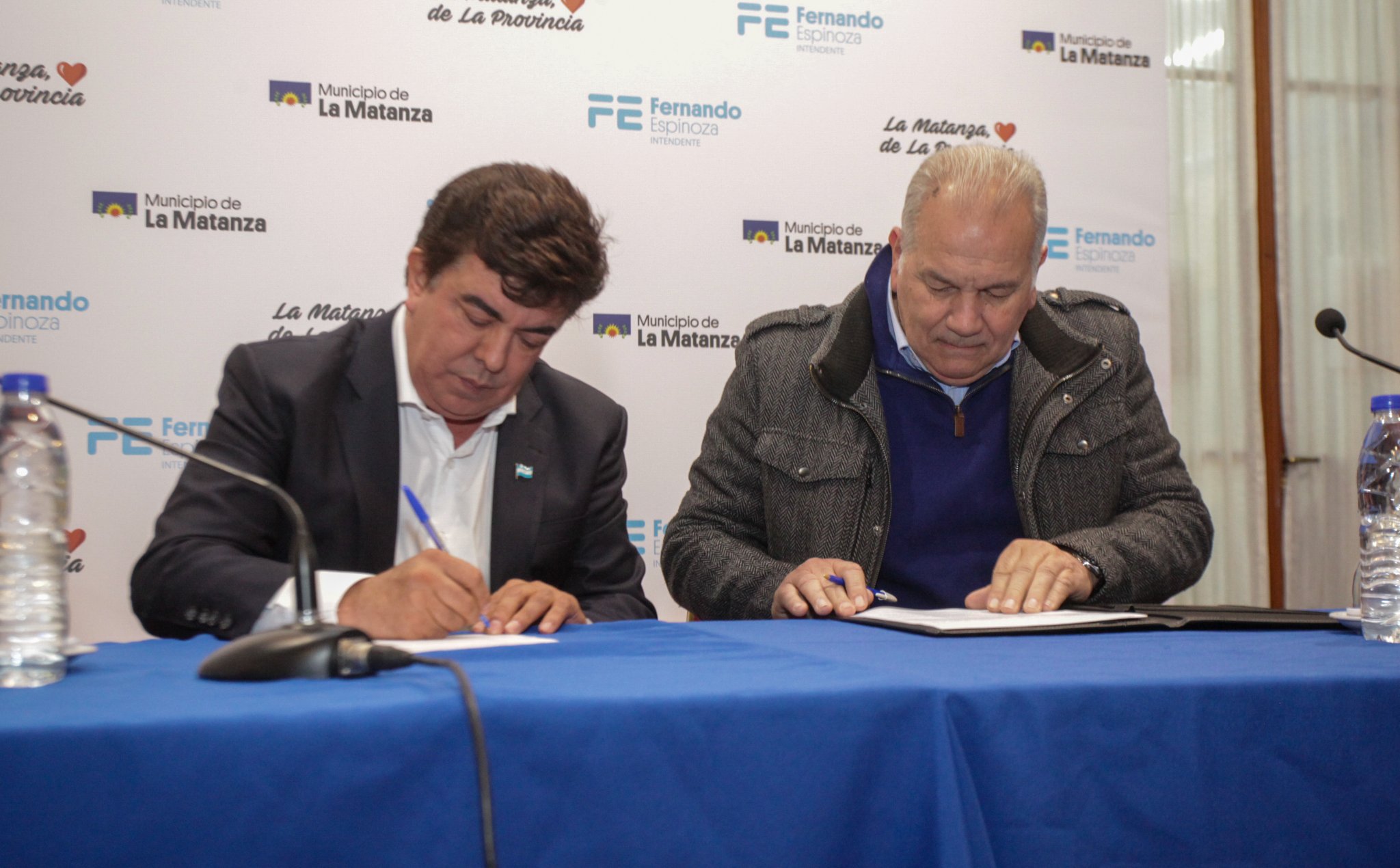 El intendente de La Matanza, Fernando Espinoza, y Daniel Martínez, rector de la Universidad Nacional de La Matanza, firmaron un convenio de cooperación que permitirá, según se informó, que ambos organismos trabajen en conjunto para el desarrollo y progreso de políticas públicas del distrito del oeste del Conurbano.