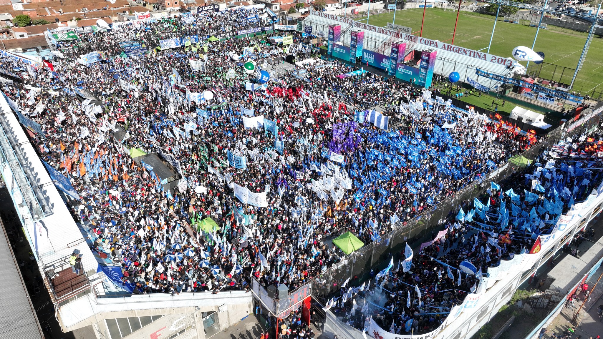 «Todos y unidos» fue la convocatoria en la que se llamó a la militancia a participar del acto en el predio ubicado en la calle Julio Humberto Grondona 3660 de Sarandí.