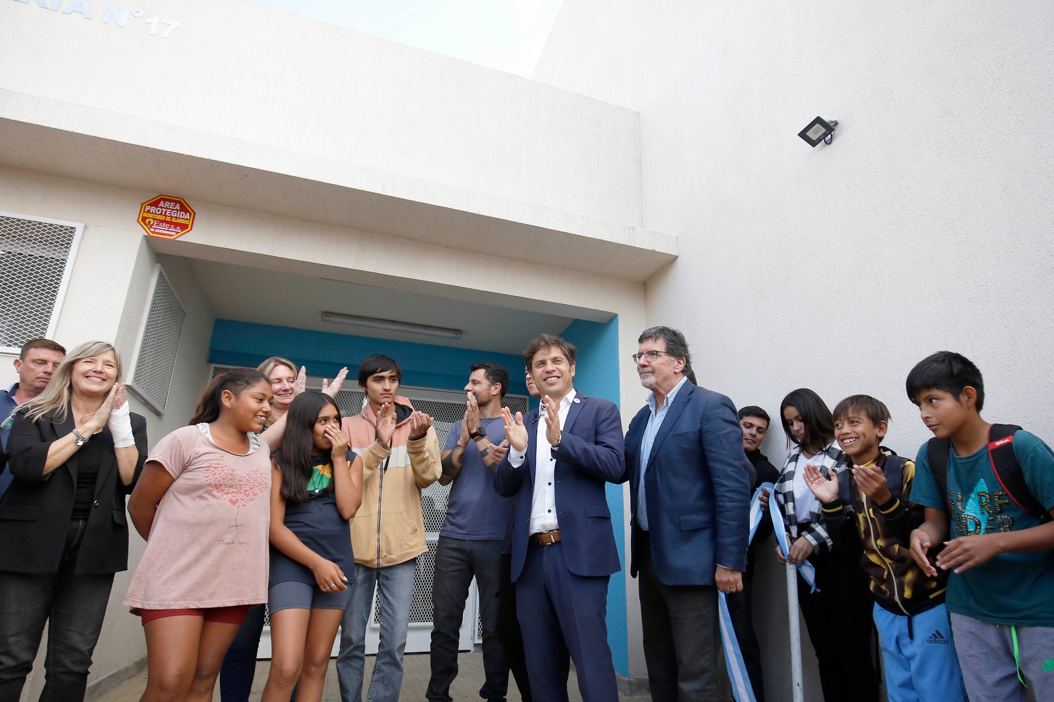 El gobernador de la provincia de Buenos Aires, Axel Kicillof, encabezó el acto de inauguración del nuevo edificio de la Escuela Secundaria N°17 de General Rodríguez, junto al intendente local, Mauro García; el director general de Cultura y Educación, Alberto Sileoni; la ministra de Gobierno, Cristina Álvarez Rodríguez; y la directora de la institución, Yanina Banfi. A continuación, recorrió las obras de ampliación de un Centro de Atención Primaria de la Salud (CAPS) acompañado por el ministro Nicolás Kreplak, en el marco de una jornada en la que se pusieron en funcionamiento cuatro centros sanitarios.