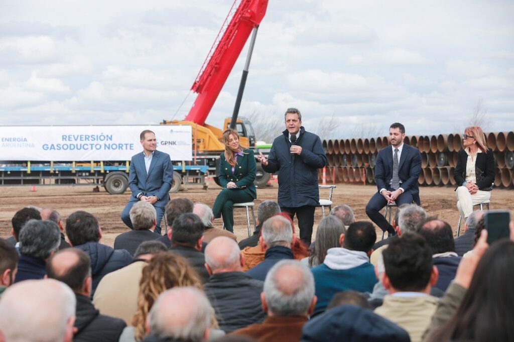El ministro Sergio Massa, la secretaria Flavia Royon, y el presidente de Energía Argentina, Agustín Gerez anunciaron la licitación de una obra fundamental para que las provincias del Noroeste reciban el gas de Vaca Muerta, en la localidad cordobesa de Tío Pujio se llevó a cabo el lanzamiento de la obra “Reversión del Gasoducto Norte”.