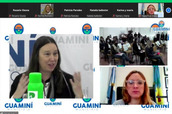 En el marco de la videoconferencia la subsecretaria de Empleo, Mónica Muscolino, abrió la presentación de la actividad con el protocolo suscripto para implementar Alas en Guamini.