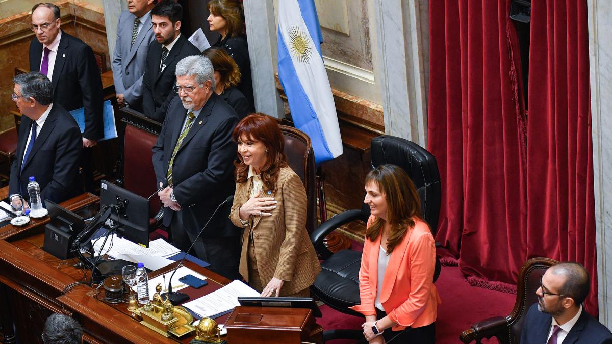 Con la presencia de la vicepresidenta de la Nación, Cristina Fernández de Kirchner, que bajó al recinto al momento de la votación, la iniciativa recibió el respaldo de 38 votos, aportados por el Frente de Todos, sus aliados y Unidad Federal, en tanto que Juntos por el Cambio se manifestó con 27 votos en contra, lo que generó la algarabía general en los palcos poblados por sindicalistas, entre los que estaban Pablo Moyano y Sergio Palazzo, que instantáneamente se pusieron a cantar La Marcha Peronista.