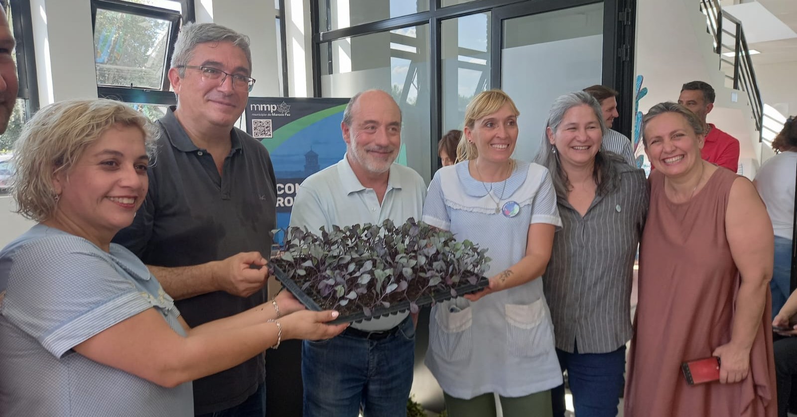 Durante el encuentro, Javier Rodríguez acompañó la distribución de plantines producidos por organizaciones de la agricultura familiar. En Marcos Paz se asistió a nueve proyectos, entre huertas comunitarias, escuelas y el Jardín Botánico Municipal.