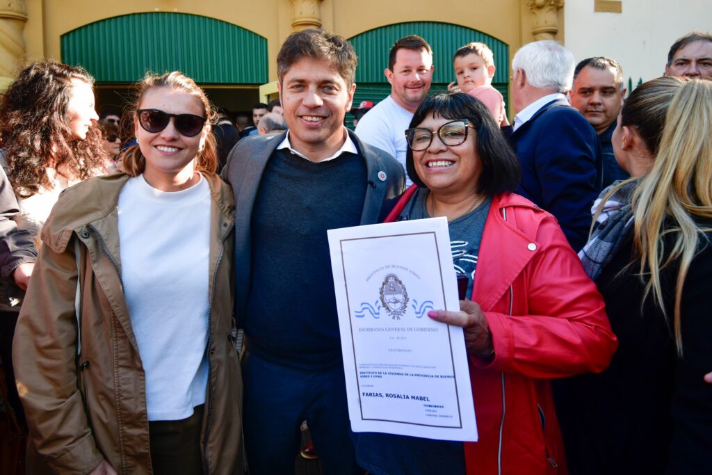 El gobernador bonaerense Axel Kicillof encabezó un acto en Coronel Dorrego donde entregó 355 títulos de propiedad gratuitos a familias del distrito, en el marco del programa Mi Escritura, Mi Casa. Este busca garantizar el derecho a la vivienda a través de la regularización dominial.