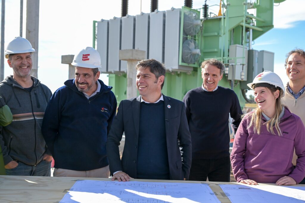 Durante la jornada, Kicillof recorrió la obra en ejecución de la nueva Estación Transformadora y la línea de alta tensión que ampliará el abastecimiento de electricidad en la región, beneficiando a más de 45 mil habitantes.