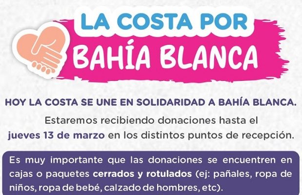 El Partido de La Costa se une en solidaridad a Bahía Blanca con el objetivo de ayudar a las personas afectadas por el temporal y la inundación.