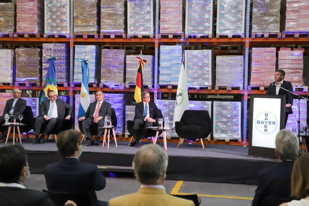 El jefe de Gabinete de Ministros de la Nación Juan Manzur, el ministro de Desarrollo Productivo Matías Kulfas; el intendente de Pilar Federico Achával; el director de Bayer para la región Cono Sur, Juan Farinati y el embajador de Alemania, Ulrich Sante, recorrieron la planta de Bayer en el partido de Pilar y participó del acto donde la empresa anunció las inversiones que realizará en el país.