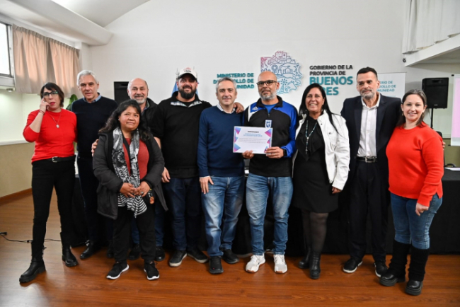 El ministro de Desarrollo de la Comunidad, Andrés Larroque, junto a los intendentes de Berisso, Fabián Cagliardi, y de Ensenada, Mario Secco, acompañados del subsecretario de Economía Popular, Daniel Menéndez, llevaron adelante la entrega de financiamiento y certificaciones a catorce emprendimientos autogestivos de estos tres distritos de la región capital, en el marco de la primera etapa de la Incubadora de Proyectos de la Economía Popular – IPEP 2025. Se trata de una iniciativa que lleva adelante la cartera, en conjunto con la Universidad Nacional de La Plata.