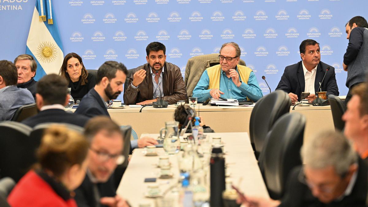 La reunión de las comisiones de Presupuesto -que preside Carlos Heller- y de Legislación General -a cargo de Lucas Godoy- se desarrolló en el segundo piso del Anexo C de la Cámara baja, donde los legisladores y legisladoras sólo podían aceptar las modificaciones o insistir con el texto original del proyecto, ya que se trata de una iniciativa girada a Diputados en segunda revisión, es decir que vuelve a esta cámara de origen, luego de haber sido modificada por el Senado.