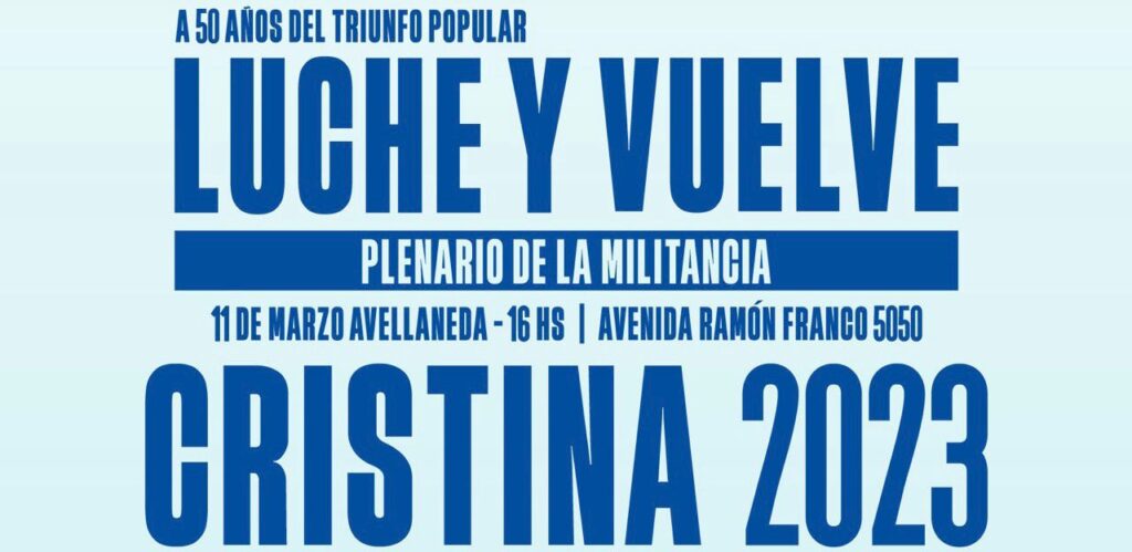 “A 50 años del triunfo popular, luche y vuelve. Cristina 2023”, dicen los ‘flyers’ que publicaron hoy varios dirigentes kirchneristas en sus cuentas de redes sociales.