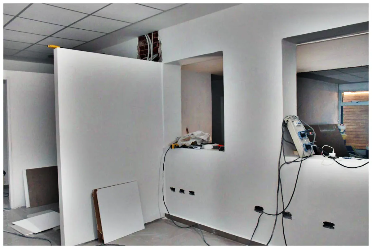 También se finalizaron dos baños con sus respectivos artefactos y los vestuarios, equipados con paneles divisorios. Además, se revistieron con plomo todas las paredes y puertas del sector para garantizar la seguridad radiológica. En esta etapa, se está avanzando con la colocación del cielorraso.