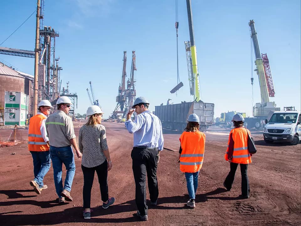Representantes del Ministerio de Producción, Ciencia e Innovación Tecnológica bonaerense, junto con Cecilia Comerio, presidenta del Puerto de San Nicolás y Eliseo Almada, presidente del Puerto de San Pedro, recorrieron las obras de infraestructura portuaria que se encuentran en proceso de ejecución en ambos puertos.