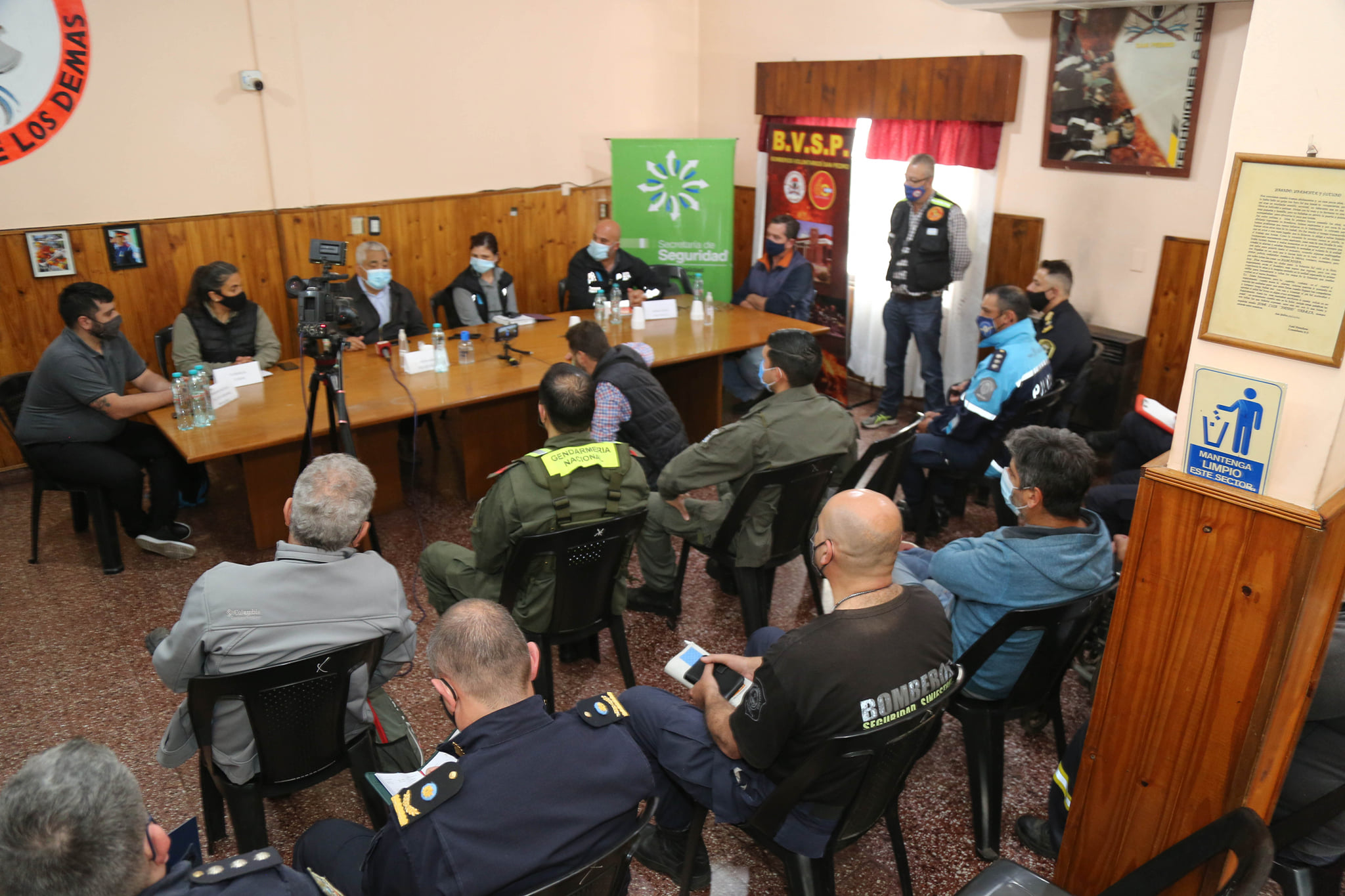 En las instalaciones de la Asociación de Bomberos Voluntarios, se convocó esta mañana a una reunión conjunta entre las fuerzas de seguridad de la provincia y representantes de los gobiernos de San Pedro y Baradero para analizar la situación generada en los últimos días y determinar tareas conjuntas para incrementar las acciones posibles para combatir los incendios que se producen en la zona de islas.